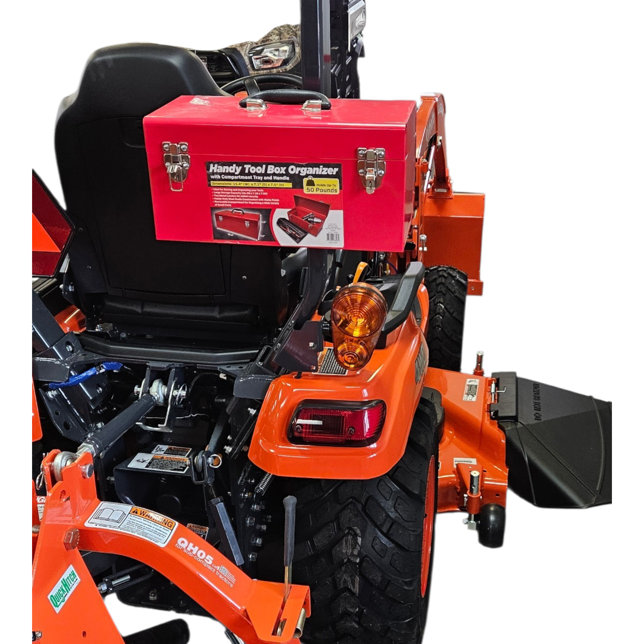 This toolbox mounting bracket is designed to fit newer style Kubota tractors with the integrated holes in the ROPS (commonly know as the rollbar). Just mount the tool box of you choice to the bracket and you are ready to go. (toolbox not included) BX2380, BX2680, BX23S, B2301, B2601, LX2610, LX2620, LX3310, LX3520, & LX4020